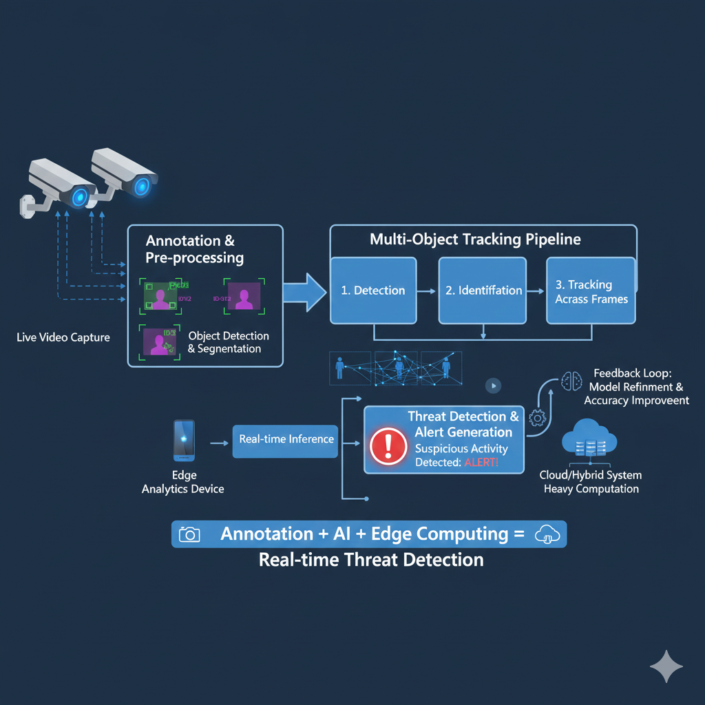 When combined with multi-object tracking, real-time edge analytics, and behavior detection, such systems turn passive cameras into proactive sentinels — delivering real-time threat detection, automated alerts, scalable deployments, and continuous adaptation.For security professionals, system integrators, AI developers, and decision-makers — investing in annotation infrastructure today is investing in the safety and resilience of tomorrow’s surveillance systems.Learn more or explore collaboration: