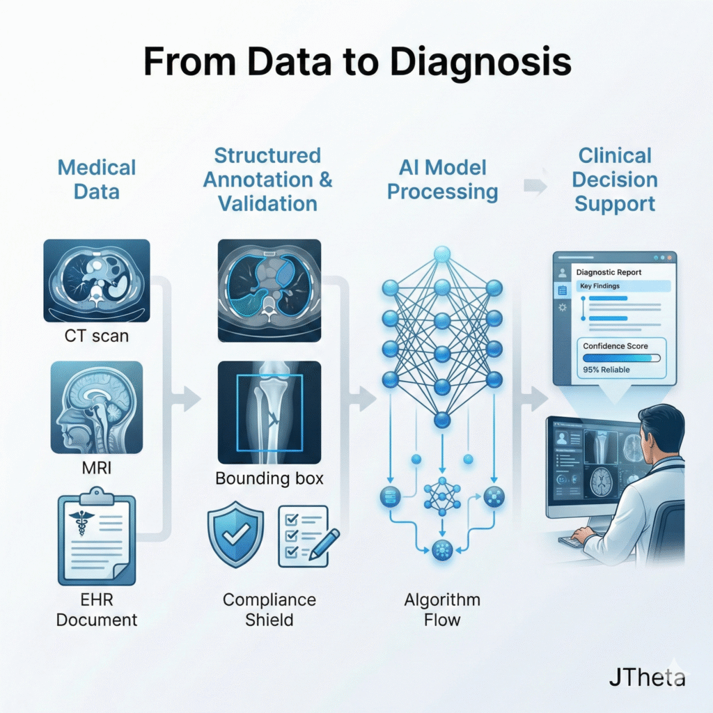 JTheta can help you architect, annotate, validate, and deploy healthcare AI solutions built for clinical reliability — not just model performance.