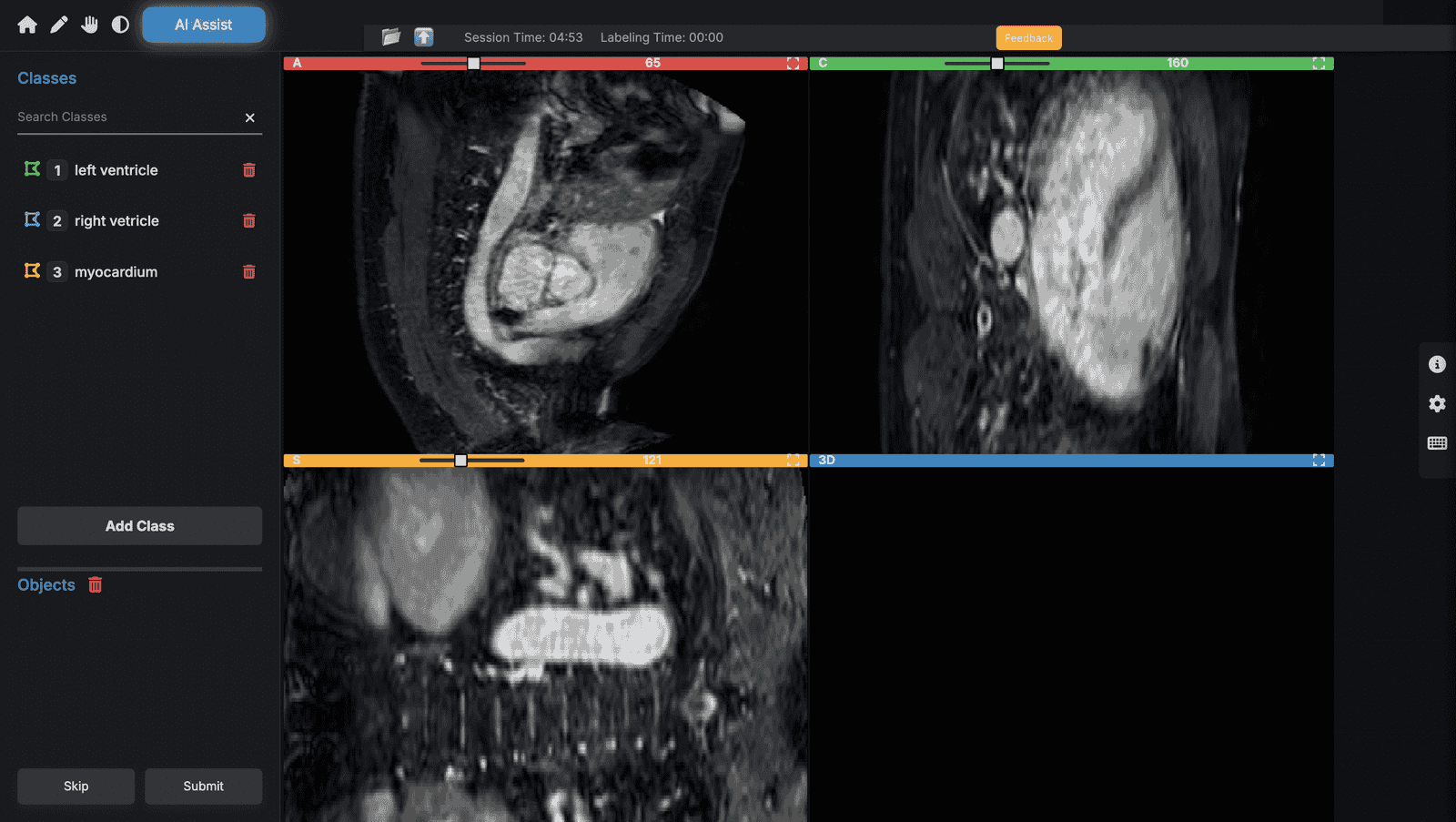 working with 3D volumetric data in radiology, neuroscience, and medical AI research. Our platform helps streamline the complex process of labeling MRI and fMRI datasets with accuracy, speed, and AI-assisted tools — all in a secure, browser-based environment.